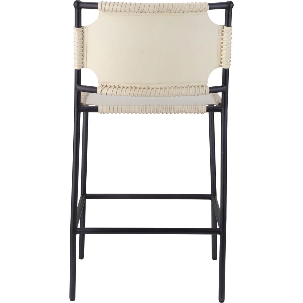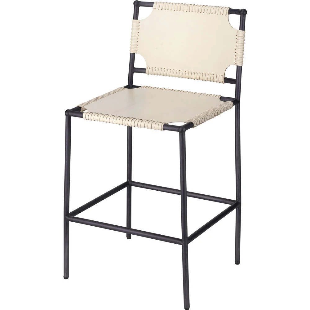 The softness of buttery off-white leather is paired with the strength of a black steel frame in these contemporary stools. Available in counter or bar heights, they are an ideal fit for decors from industrial to coastal. Natural color variation will occur in leather Metal finish may vary.