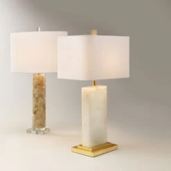 The Alabaster Accent Borealis lamp has the cool luminosity of an Arctic evening. With its organic cut pieces, this hand-made lamp is very special. The shade, made with our Stone Linen fabric, is a perfect match.