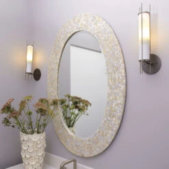 Mother of pearl is the iridescent substance that forms the lining of the shells found in both fresh water and salt water mollusks. Because this is a natural occurring substance and the cut pieces are put on individually by hand, no two items will be alike.