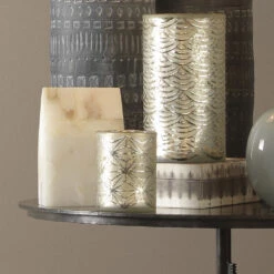 Inspired by the Monopoly game pieces we all know and love. Our Alabaster collection is unique in how we have combined organic cut pieces of alabaster to create a fresh approach to designing with this beautiful, natural material. Each piece is unique in the way it is puzzled together to make a flat surface. These decorative pieces are perfect for adding a touch of elegance to bathrooms, living rooms, entryways and bedrooms.