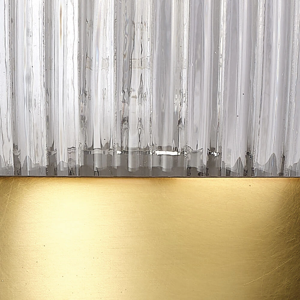 The warmth of polished metal pairs eloquently with thick, ribbed glass in this elevated wall sconce. They can be installed facing up or down, and are compatible with dimmer switches, allowing you to customize the look. Choose exactly how much light you want, and where you want it! These are especially impactful when displayed in multiples; place one on either side of a bookcase or entertainment unit, or use several to light a long hallway.